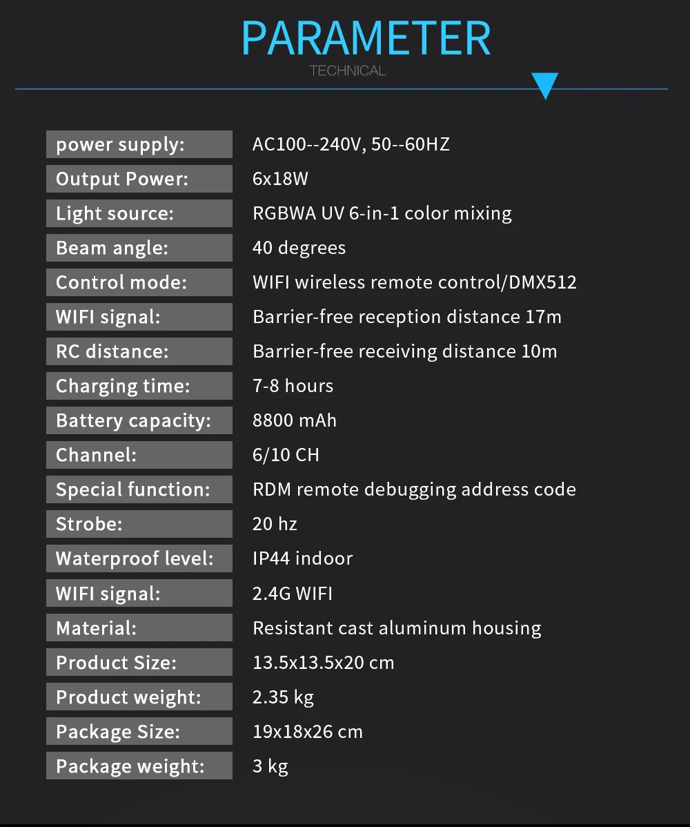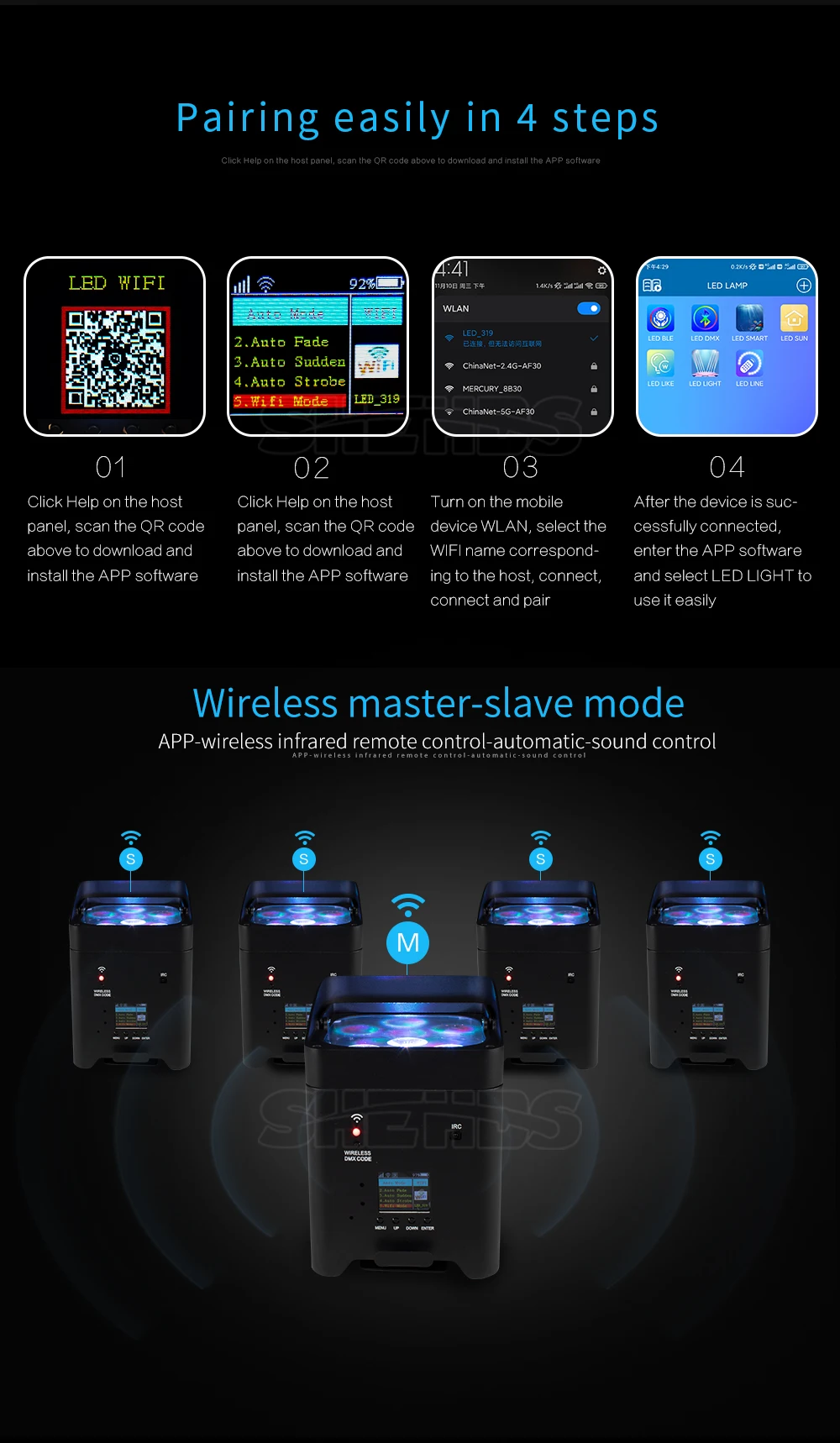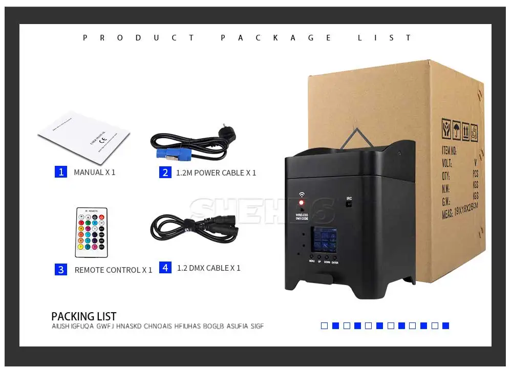 4Pcs 6X18W RGBWAUV LED Battery Par Wireless DMX512 Phone WIFI Wash Wall Light for Party Disco Christmas Lights Audience